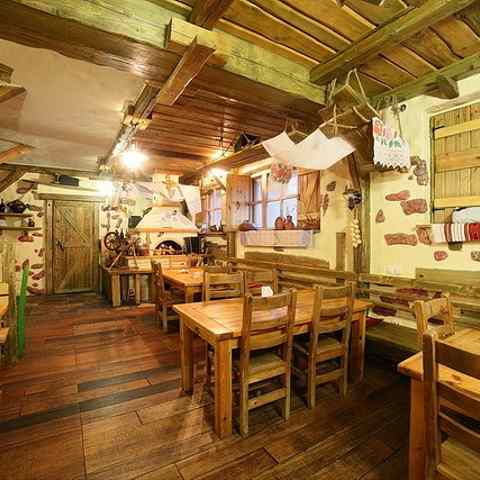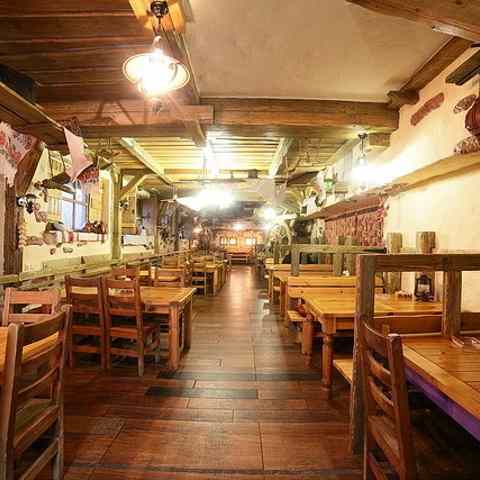 В оформлении используются национальные мотивы — много деревянных изделий, текстильные украшения, декор из сушеных трав. Обстановка напоминает небольшой хутор, где жители собираются после работы, чтобы расслабиться и пообщаться.